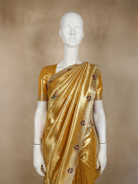 Golden Yellow Geometric Woven Design Pure Kanchipuram Tissue Silk Saree - Diadem