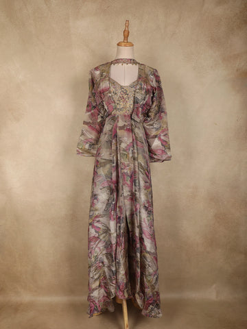 Grey Floral Printed and Embroidery Ethnic Gown - Diadem