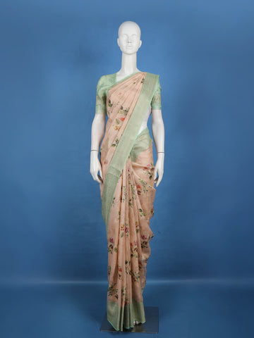 Light Peach Floral Butta Design Semi Tussar Silk Saree - Diadem
