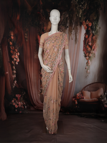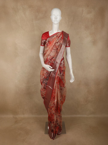 Coral Floral Designed Fancy Art Silk Saree - Diadem