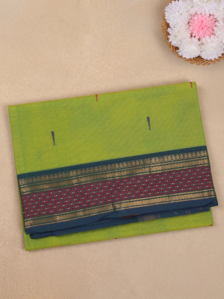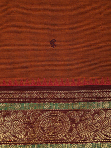 Kanchi cotton sarees are one of the best types of cotton sarees for women as they are renowned for their rich colours, intricate zari work and durability. This type of high-quality cotton saree is perfect for traditional ceremonies, festivals, and religious occasions due to its regal appearance and cultural significance.