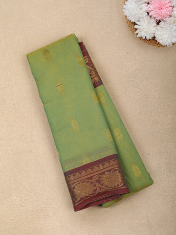 Kanchi cotton sarees are one of the best types of cotton sarees for women as they are renowned for their rich colours, intricate zari work and durability. This type of high-quality cotton saree is perfect for traditional ceremonies, festivals, and religious occasions due to its regal appearance and cultural significance.