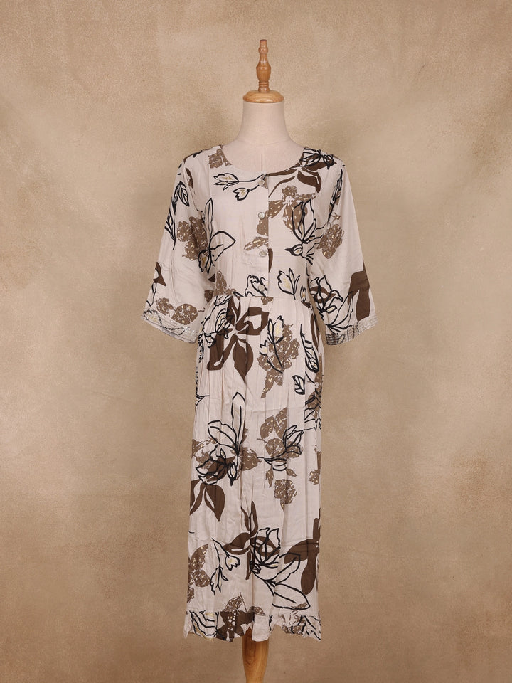 Cream Cotton Kurti Adorned with Floral Prints and Thread Work - Diadem