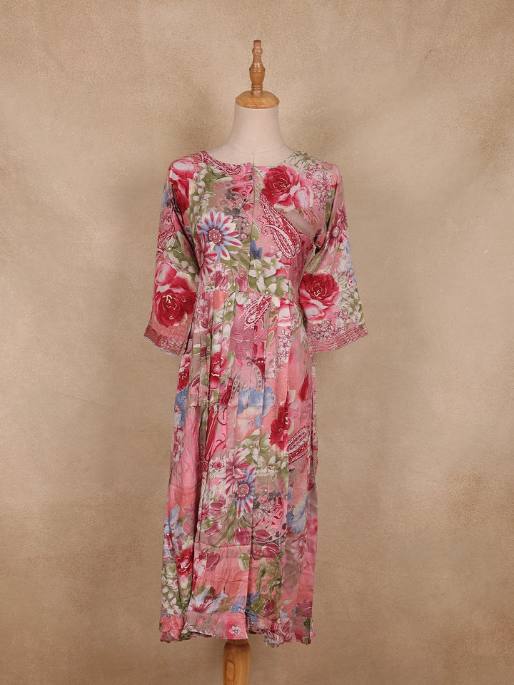 Multicolor Floral Printed Cotton Kurti - Diadem