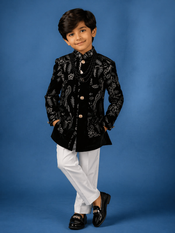 Our kurta sets offer a delightful fusion of style and comfort, featuring floral prints and tailored designs. These boys' Diwali outfit ideas are ideal for family gatherings and cultural celebrations, as they are easy to wear while still looking stylish. The combination of classic kurtas with contemporary elements ensures that your boy can enjoy the festivities in a cosy yet fashionable manner, creating lasting memories.