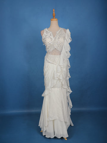 Ruffled Deepavali saree designs bring a trendy, playful vibe to the traditional attire, adding volume and movement. They offer a stylish option for those looking to embrace something different yet festive.
