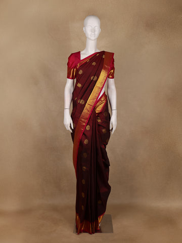 Maroon Floral Motif Woven Pure Kanchipuram Silk Saree - Diadem