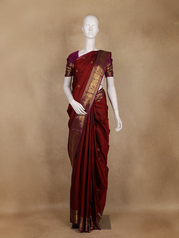 Maroon Two-Headed Eagles Motif Pure Kanchipuram Silk Saree - Diadem