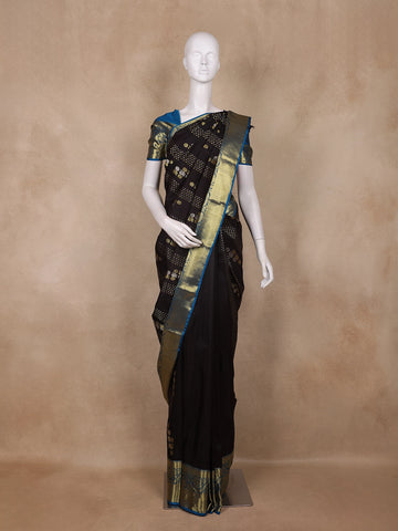 Black Floral Woven Pure Kanchipuram Silk Saree - Diadem