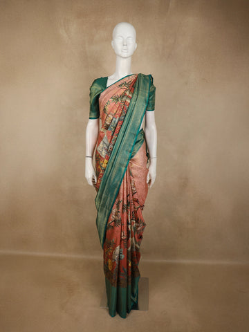 A cape-style Deepavali special saree adds a dramatic flair, transforming your saree into a regal, fashion-forward outfit. The cape gives a graceful and unique look, perfect for making a statement at evening Diwali events.