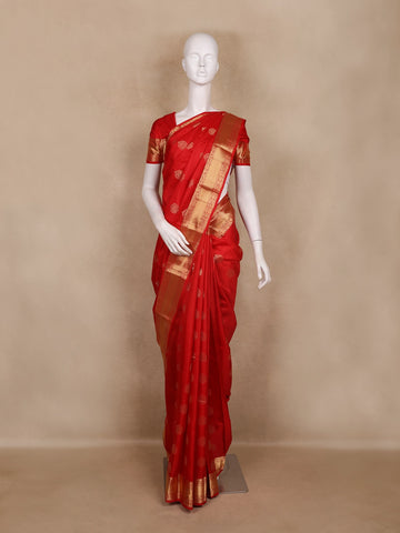 Bright Red Monotone Pure Kanchipuram Silk Saree - Diadem