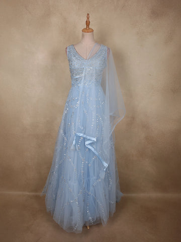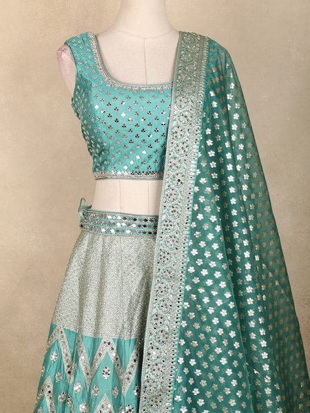 Blue Floral Embroidered Organza Bridesmaids Lehenga - Diadem