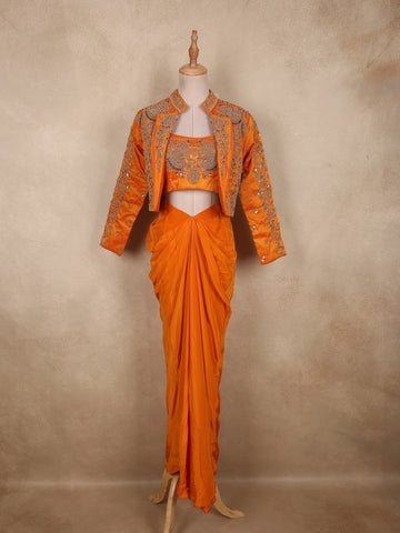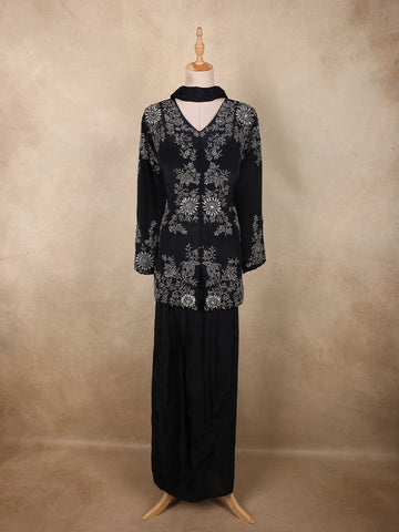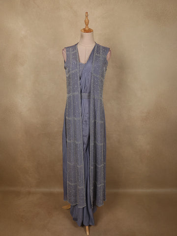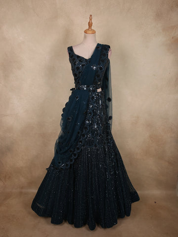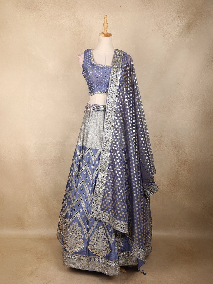 Blue Floral Embroidered Crepe Bridesmaids Lehenga - Diadem