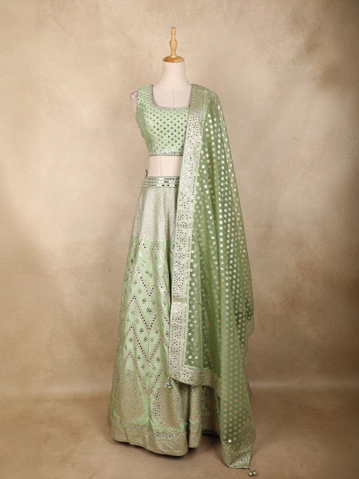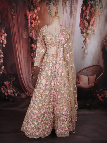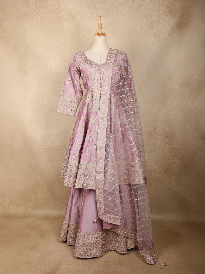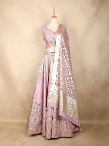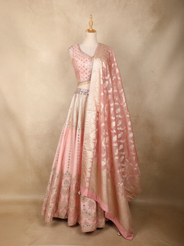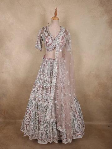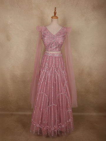 Baby Pink Sequins Embroidered Net Lehenga Set With Dupatta - Diadem