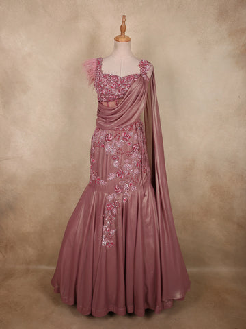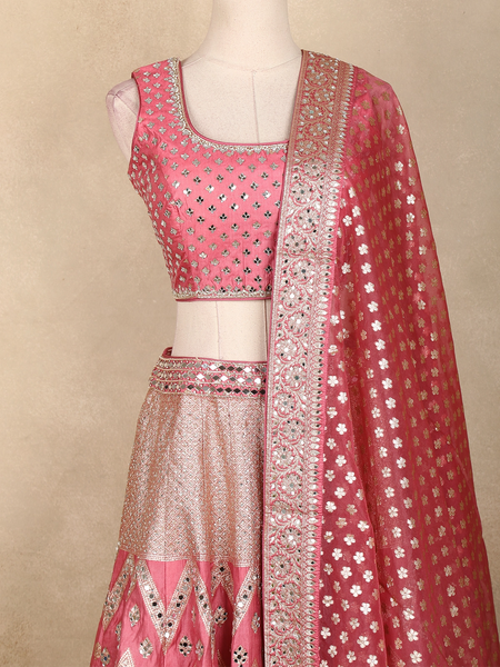 Woodrose Pink Floral Embroidered Organza Bridesmaids Lehenga - Diadem