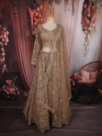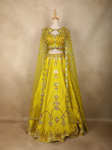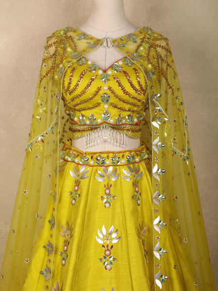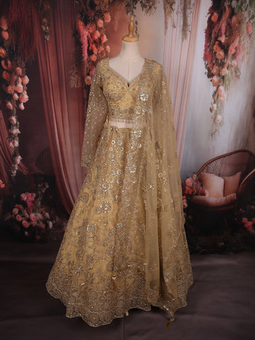 Yellow Floral Embroidered Net Lehenga for Bridesmaids - Diadem