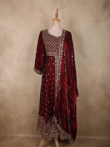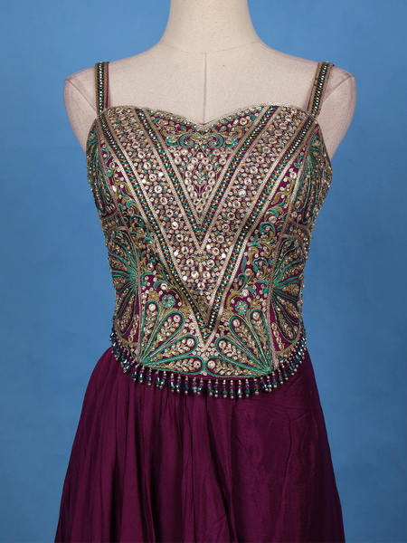Red Abstract Embroidered Crepe Bridesmaids Lehenga - Diadem