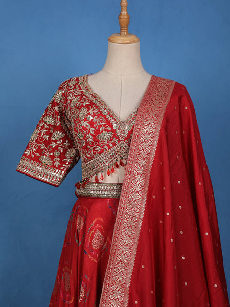 Red Abstract Embroidered Crepe Bridesmaids Lehenga - Diadem