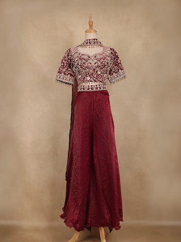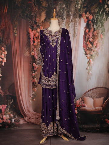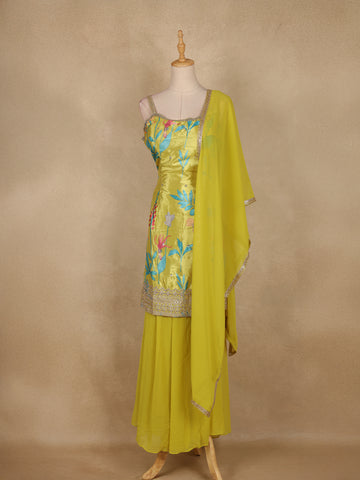 The embroidered Sharara suit features a short kameez paired with wide-legged, flared pants known as shararas, and a dupatta. The sharara salwar suit embroidery design is perfect for occasions which call for a grandeur look such as festive celebrations.