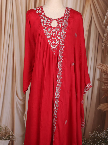 Red Floral Designed Cotton Salwar Suit - Diadem