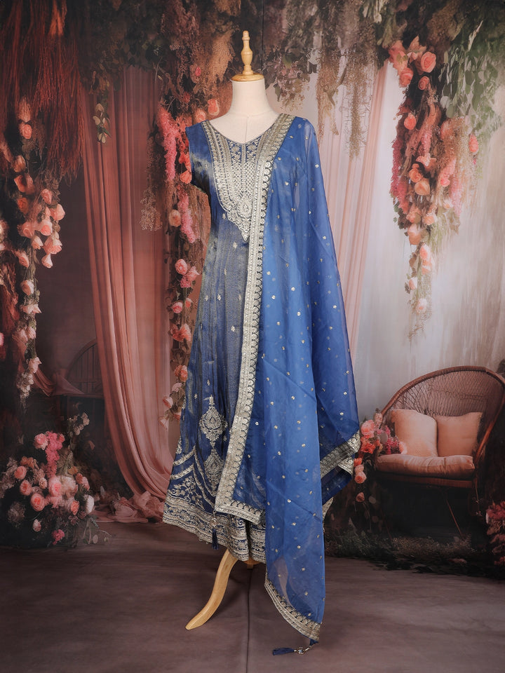 Aqua Blue Semi Silk Salwar Suit with Embroidery - Diadem