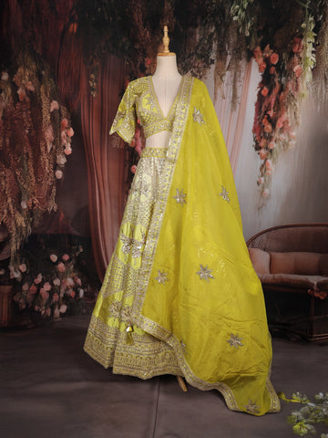 Silk lehenga for engagement functions has to be one of the most well-known and loved choices for their timeless elegance, lustrous fabric and intricate traditional designs. The classic beauty and sophisticated charm make it the ideal engagement look for bride in lehenga.