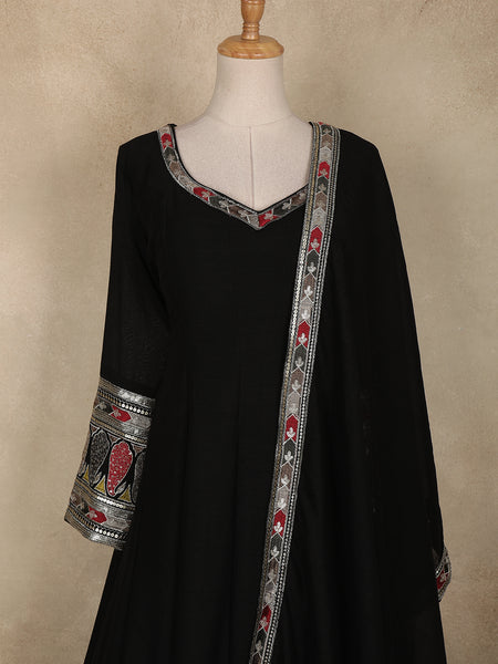 Anarkali gowns with dupatta add an extra layer of elegance and tradition to the outfit. The flowing dupatta can be draped in various styles to enhance the overall look. The full Anarkali dress with dupatta is perfect for festive occasions and weddings, offering a traditional and stylish look.