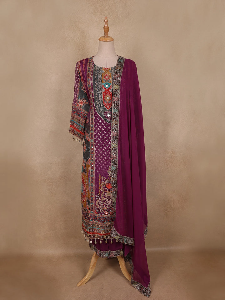Ethnic wear salwar suits are traditional Indian outfits consisting of a long tunic (kameez) paired with loose-fitting trousers (salwar) and often accompanied by a matching scarf or shawl (dupatta). Known for its elegance and ease, these ethnic suits are the best choices for both casual and formal occasions.