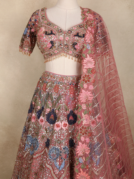 Embrace the charm of nature with our floral fancy lehenga design, featuring delicate floral patterns and vibrant colours, perfect for a fresh and romantic look.