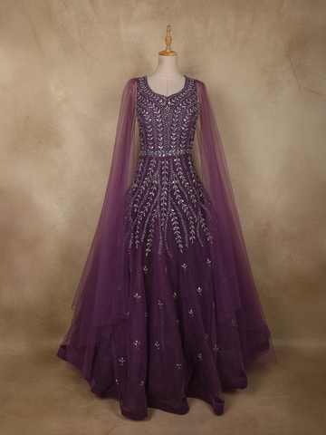 - Purple Sequins and Beads Embroidered Design Net Gown – Crafted for spotlight moments.