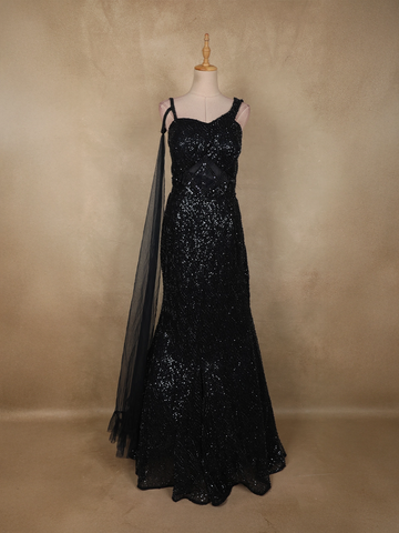 - Dark Blue Sequins and Beads Embroidered Design Net Gown – Elegantly structured with premium beadwork.