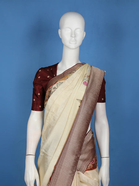 Beige Floral Printed Saree - Diadem