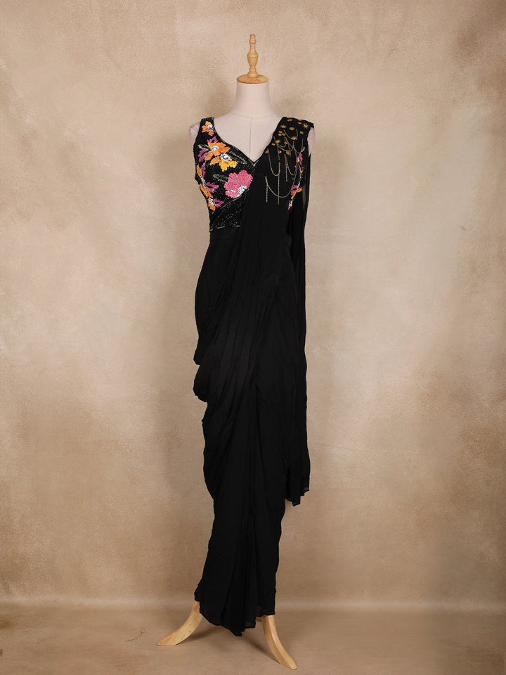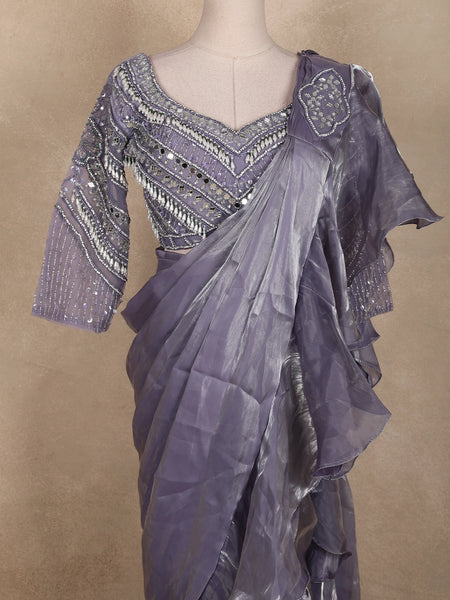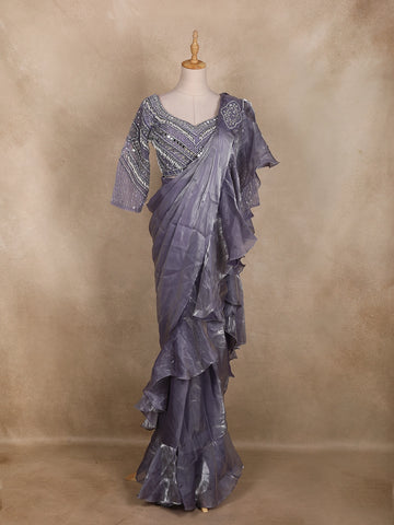 Sky Blue Sequin Embroidery Designed Net Saree - Diadem