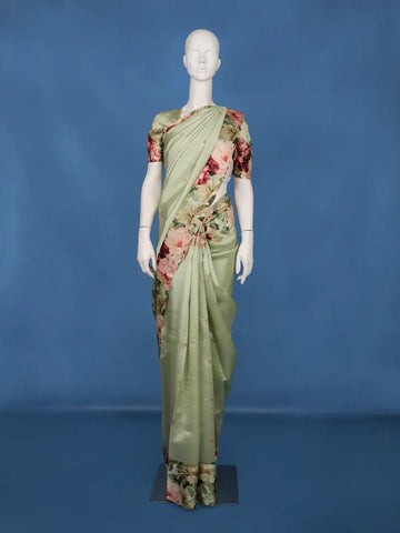 Radiant elegance on your farewell day with our Organza farewell sarees, showcasing exquisite motifs and patterns that exude elegance, ensuring a perfect option for your special day.