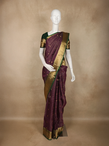 Deep Purple Floral Butta Woven Banarasi Silk Saree - Diadem