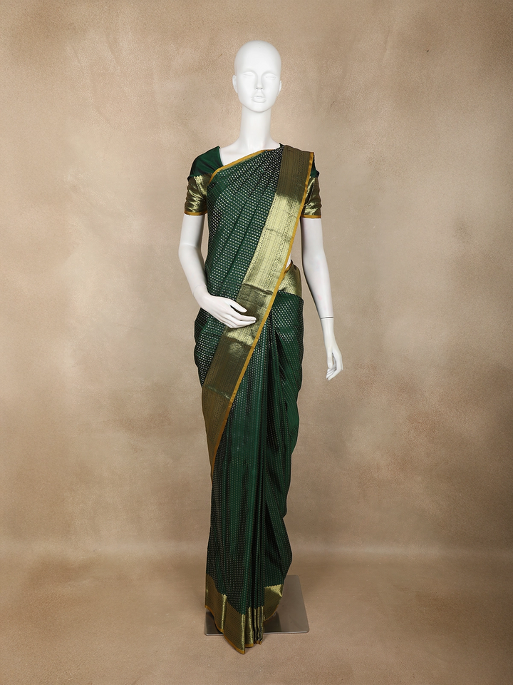 Green Paisley Design Pure Kanchipuram Silk Saree - Diadem