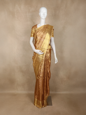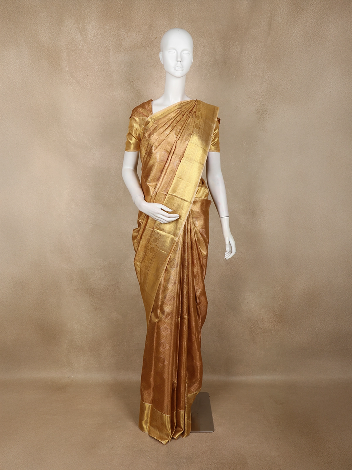 Golden Yellow Geometric Woven Design Pure Kanchipuram Tissue Silk Saree - Diadem