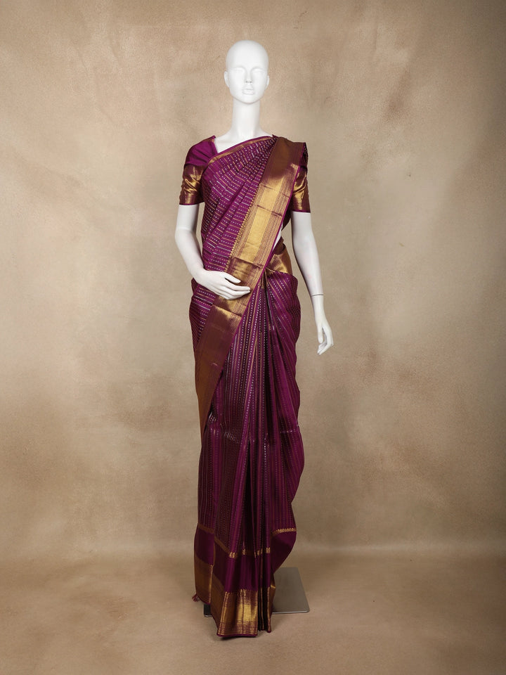 Lavender Floral Woven Pure Kanchipuram Silk Saree - Diadem