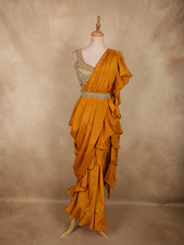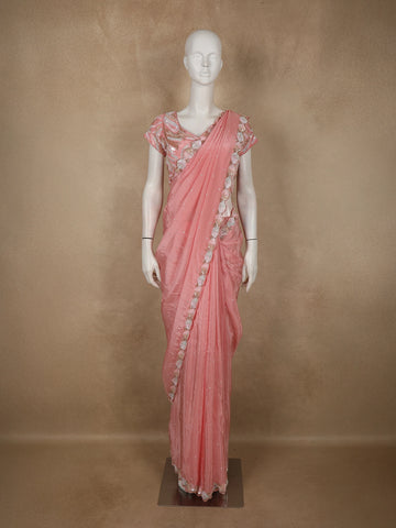 Queen Pink Floral Beads Embroidered Satin Ready To Wear Saree - Diadem