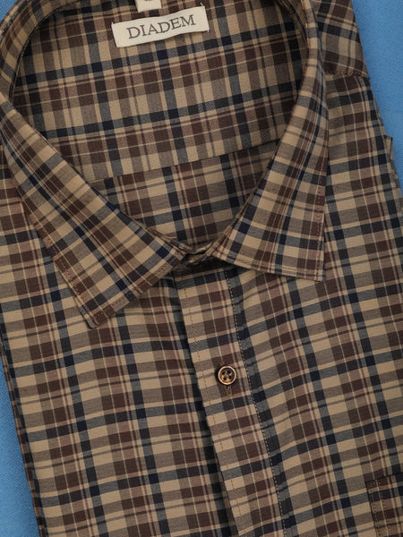 Cream Cotton Formal Shirt with Stripes and Checked Design - Diadem