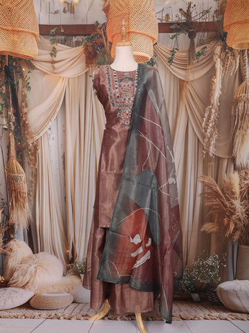 Copper Brown Floral Woven Banarasi Silk Sharara Set - Diadem