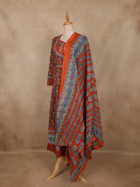 Orange Floral Printed Kaftan-style Crepe salwar suit - Diadem