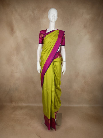 Parrot Green Solid Zari Border Kanchipuram Silk Saree - Diadem