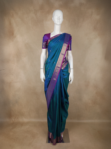 Peacock Blue Butta Design Woven Pure Kanchipuram Silk Saree - Diadem