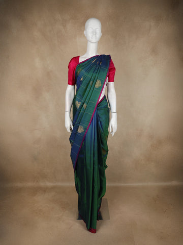 Peacock Blue Paisley Design Banarasi Silk Saree - Diadem