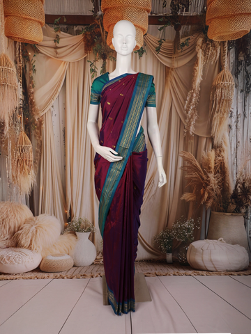 Wine Floral Butta Woven Pure Kanchipuram Silk Saree - Diadem