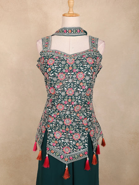 Bottle Green Floral Embroidered Semi Silk Lehenga for Brides - Diadem