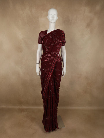 Crepe georgette sarees offer a textured feel and a unique look, usually worn by women who appreciate the finer details in their attire.