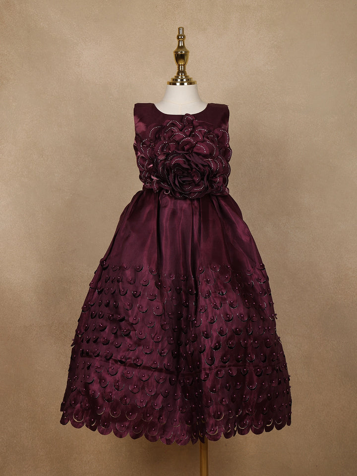 Peach Pink Zigzag Sequins Design Kids Georgette Gown - Diadem