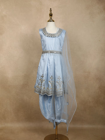 Blue Floral Designed Party Gown for Girls - Diadem
